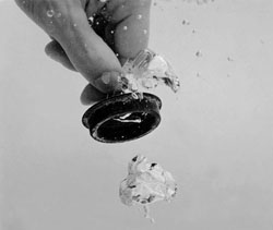 Las elegantes y sobrias fotografías en blanco y negro, donde el contraste de su gran formato con el fragmento microscópico que se nos muestra violenta un tanto la mirada, detallan el anónimo gesto del combate con la basura de cada día, con ese pequeño excremento doméstico al alcance de nuestras manos: la impertinente goma de mascar adherida al zapato, el aseo de las uñas, los residuos de la comida, la fruta que debe ser saneada…gestos universales, que no parecen distinguir sexo ni destreza. Sorprende esa particular identificación de las manos con la basura; analogía quizás alentada por Barthes, autor leído por Prada con fruición, que no pierde ocasión de describir las manos y las uñas de quienes le rodean y su estado de limpieza. Manos que se dirían obsesionadas por la mancha, por la limpieza ; manos inmaculadas blanqueadas por una pastilla de jabón de color oscuro, que silencian otras basuras domésticas, como las del amor solitario o compartido. Manos ensimismadas las de estos ejercicios para cinco dedos, donde están ausentes otros gestos y usos. Por ejemplo, los del lenguaje. Unas manos que también pueden ser elocuentes para quienes como yo crecimos en el silencio.
